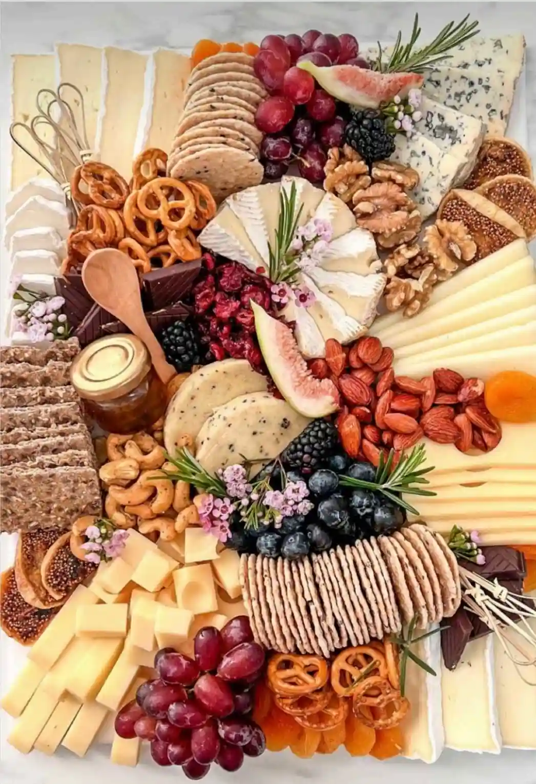 Assortment of cheeses, Charcuterie, Fruit, Dips, Condiments, Bread & Crackers