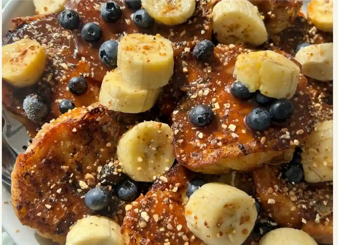 French toast with banana and blueberr...