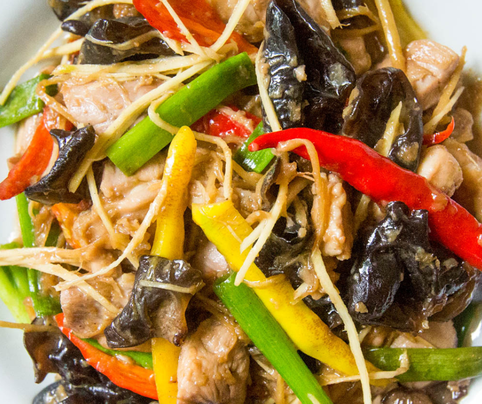 Stir-Fried, Sautéed with Bamboo Shoots, Black Mushrooms and Fragrant Mushrooms