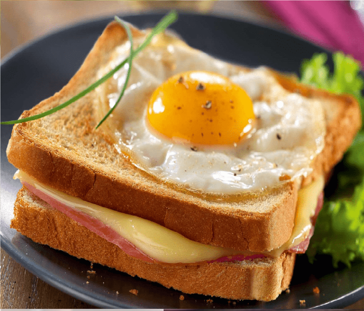 Pain de Mie, Jambon, Fromage, Crème, Sel, Poivre, Œuf au Plat