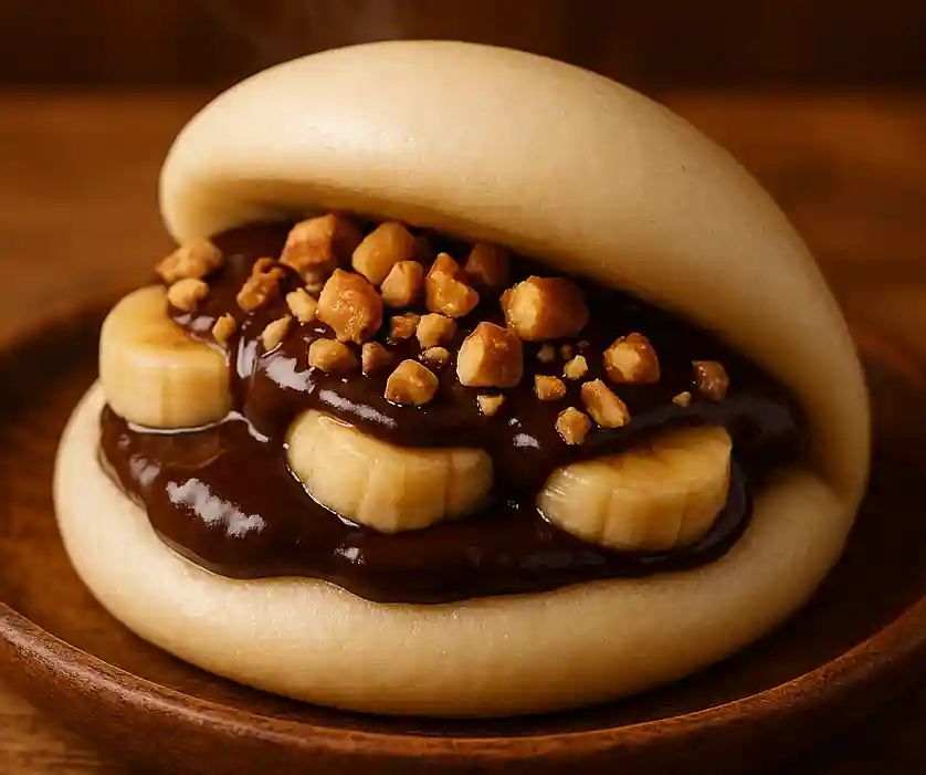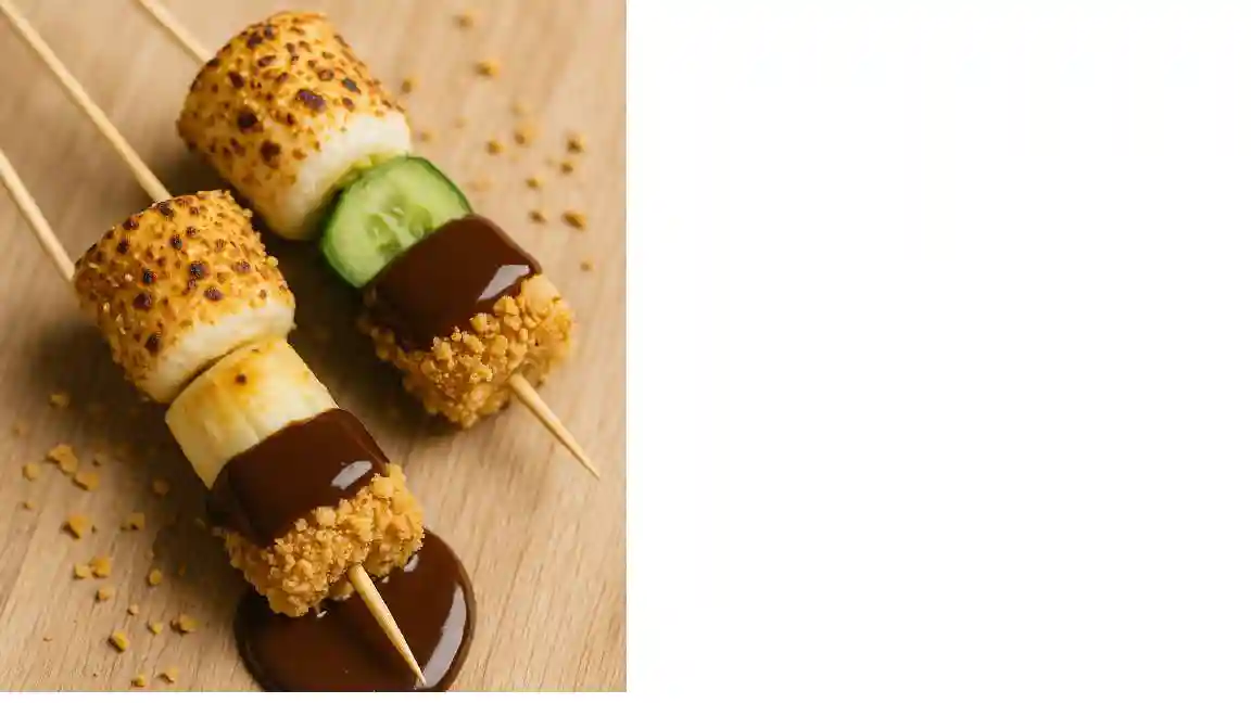 Marshmallow Brulé, Sauce Chocolat, Banane, Brisures de Biscuit.